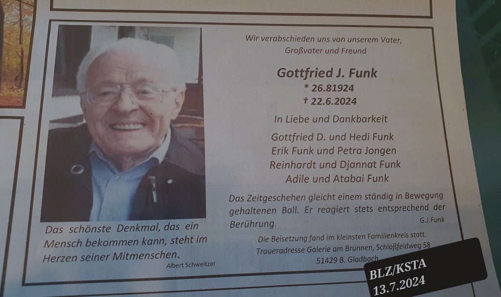 ist am 22.6.2024 im Alter von fast 100 Jahren in Bensberg verstorben.