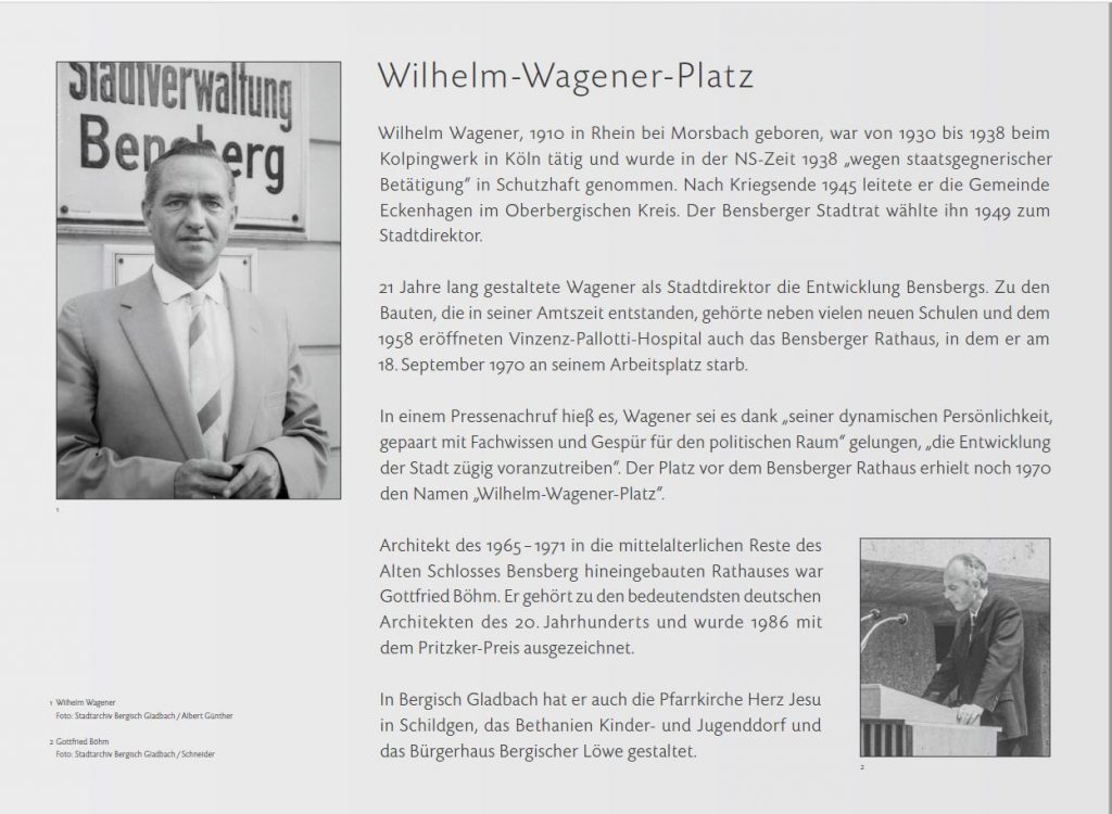 Wilhelm Wagener  – Eine Hinweistafel am Rathaus Bensberg